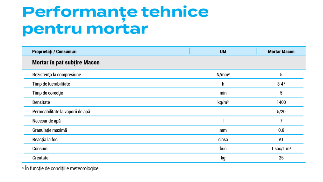 Puteți vedea mai multe detalii legate de acest produs accesând Fișa tehnică mortar Macon