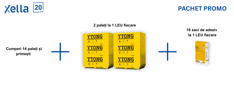 La fiecare 14 paleți cumpărați primești 2 paleți la 1 LEU fiecare + 16 saci de adeziv la 1 LEU fiecare.